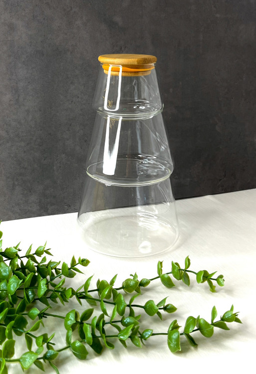 این برج تنقلات از جنس پیرکس شفاف و مقاوم ساخته شده و با در بامبو، ظاهری طبیعی و شیک دارد. مناسب برای نگهداری انواع خشکبار، تنقلات، شکلات و شیرینی است و با طراحی چند طبقه خود، فضای آشپزخانه یا میز پذیرایی شما را مرتب و زیبا نگه میدارد