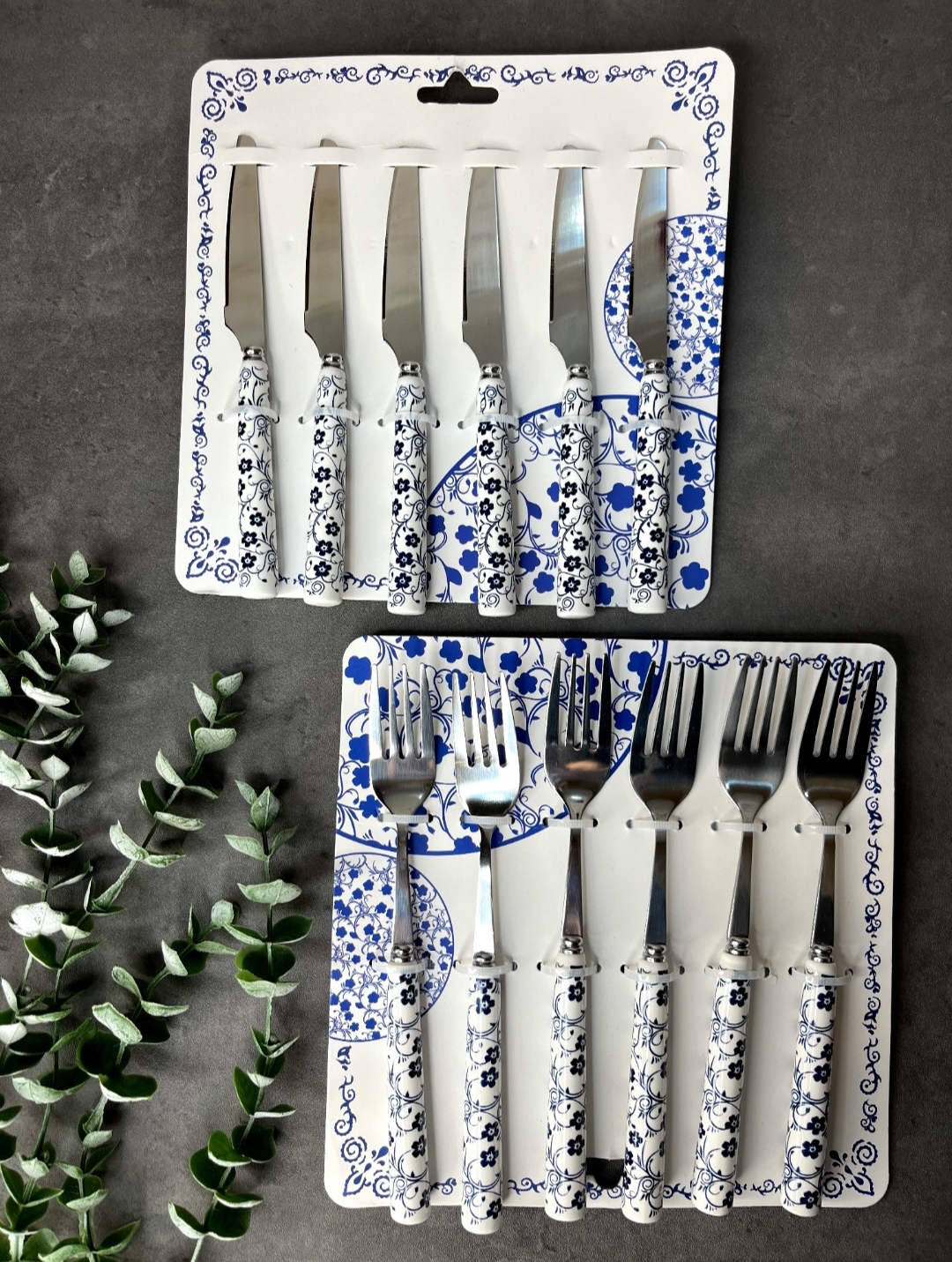 ست کارد و چنگال دنی هوم (Dani Home) با طراحی خاص و دستههای سرامیکی طرحدار، جلوهای شیک و اصیل به میز غذاخوری شما میبخشد.
