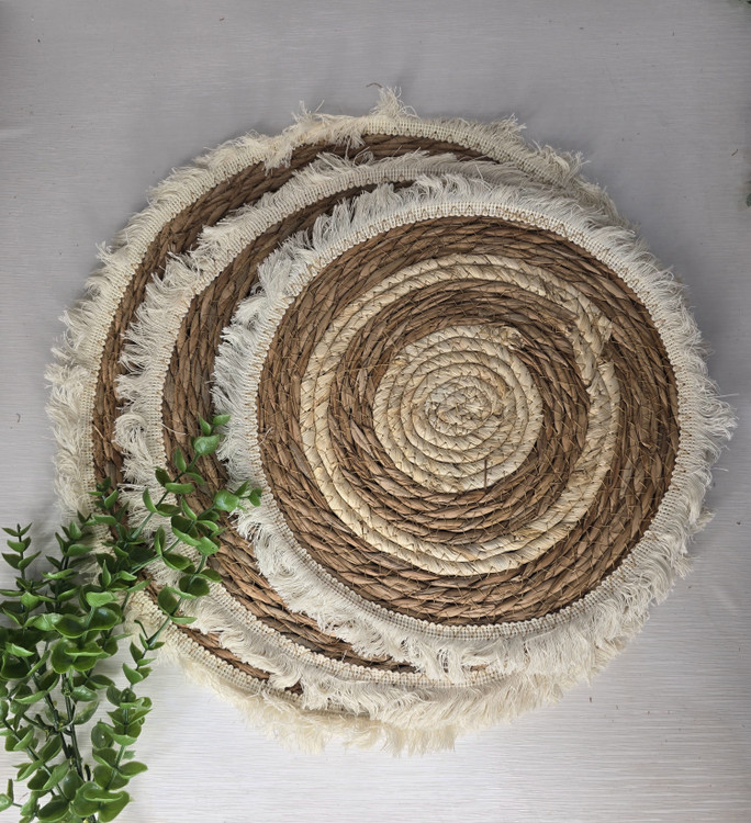زیر بشقابی حصیری ریش ریش در سه سایز بزرگ متوسط کوچک