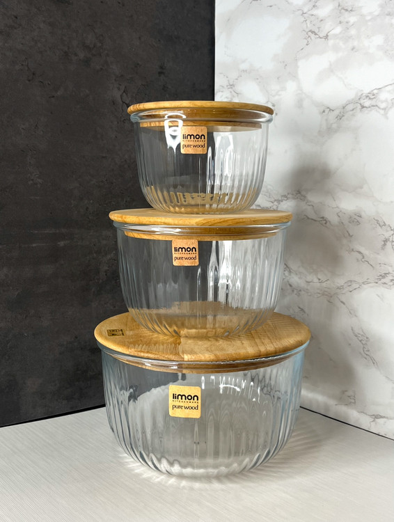 ظرف نگهدارنده شیشه ای گرد درب چوبی لیمون۵۵
