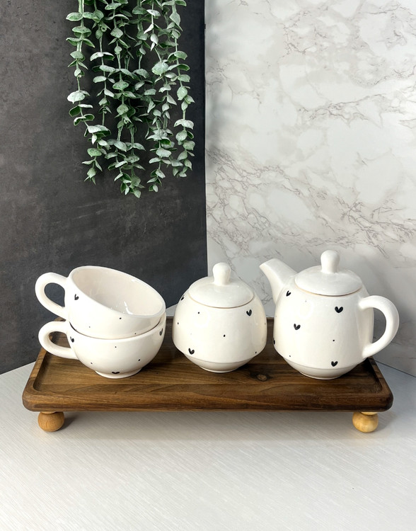 ست چای‌خوری سرامیکی طرح قلب مشکی ۶۳