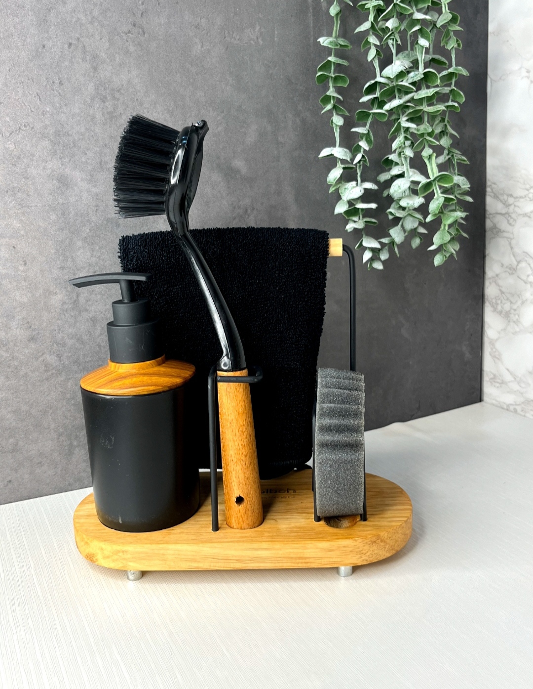 این جا مایع استند دار برند کلبه، یک پک کامل و کاربردی برای نظم دادن به آشپزخانه شماست. علاوه بر نگهداری مایع ظرفشویی یا سایر مایعات، شامل فرچه، اسکاچ و دستمال نظافت نیز میباشد تا کار شستوشو و نظافت را ساده و سریع کند.