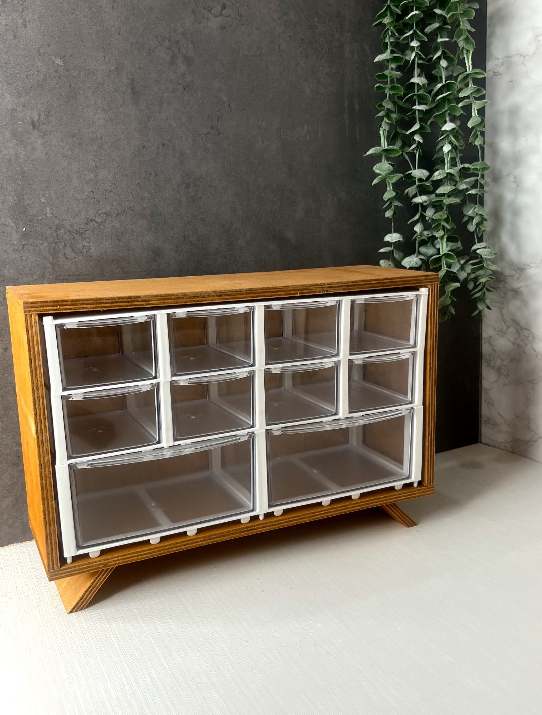 باکس ادویه چوبی، محصولی زیبا و کاربردی برای نگهداری ادویههای مورد استفاده در آشپزی است. بدنه چوبی با طراحی جذاب، جلوهای طبیعی به آشپزخانه میدهد و باعث میشود ادویهها همیشه در دسترس و آماده استفاده باشند. این باکس برای قرار دادن ادویههای پرمصرف کنار گاز یا روی میز آشپزخانه گزینهای مناسب و خوشظاهر است.